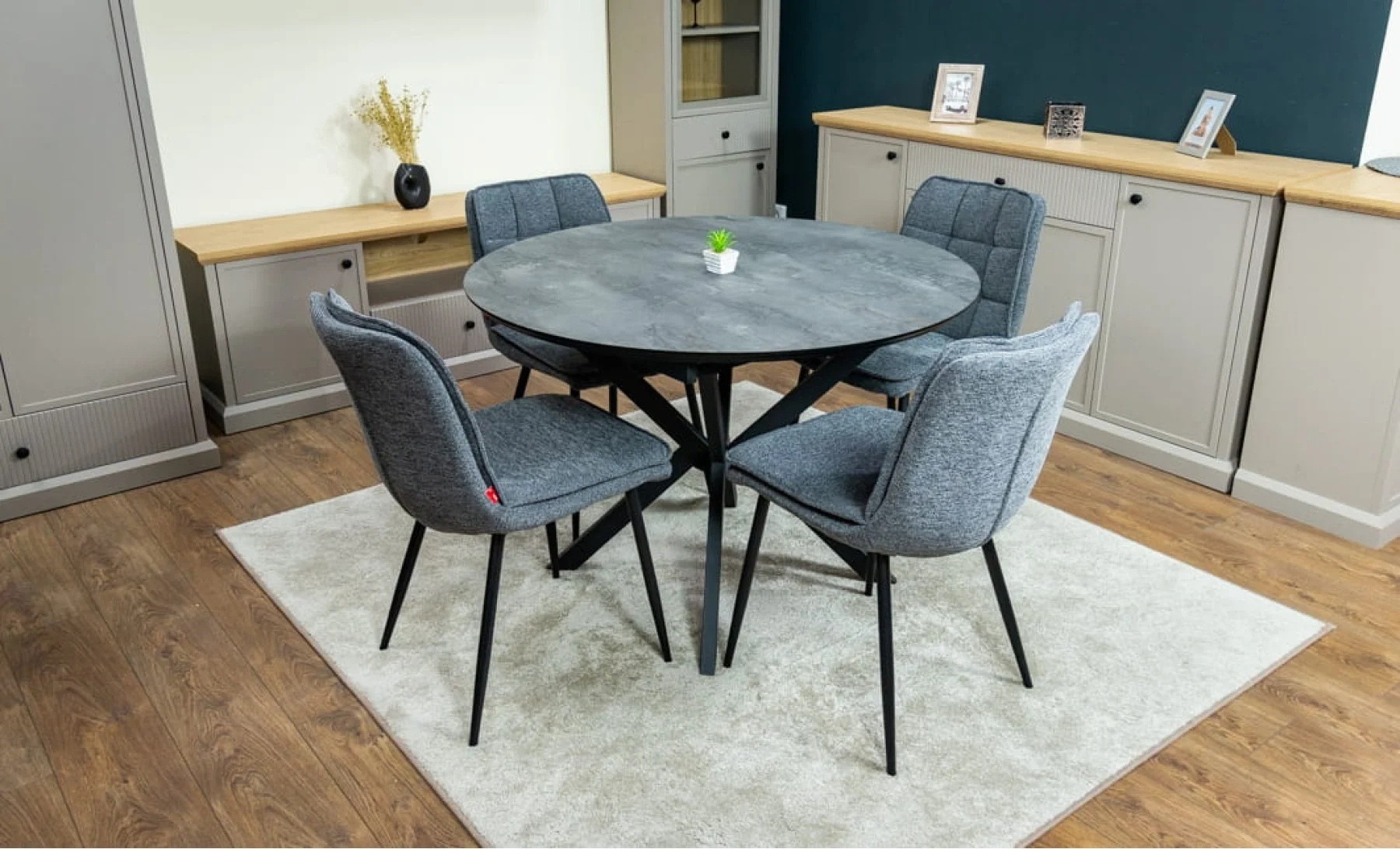 Masă Dobok 110 Irony Super Matt se remarcă prin designul său geometric modern și finisajul mat cu efect de piatră gri, ideal pentru interioare contemporane cu personalitate. Forma rotunda și culoarea neutră o transformă într-o piesă versatilă, care se integrează ușor în diverse stiluri de amenajare.