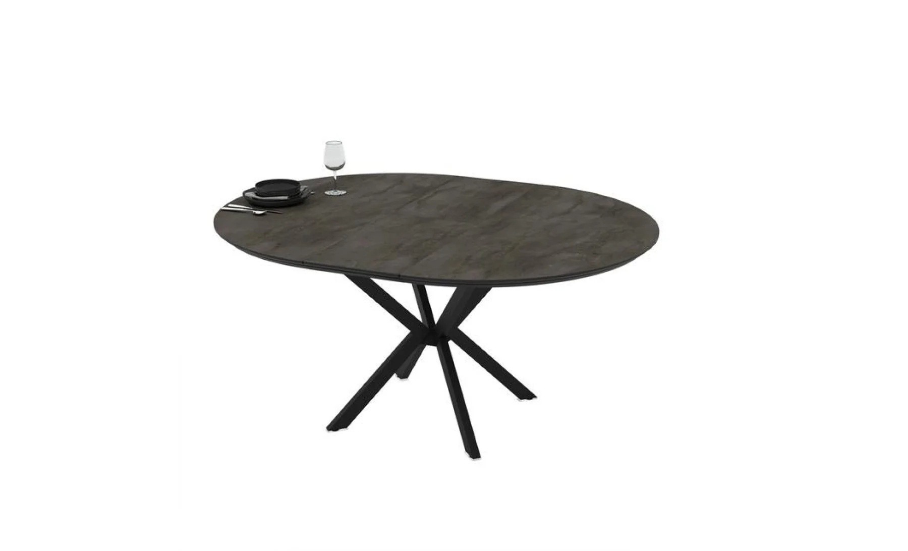 Masă extensibilă rotunda, finisaj gri cu efect de piatră (Irony Super Matt)